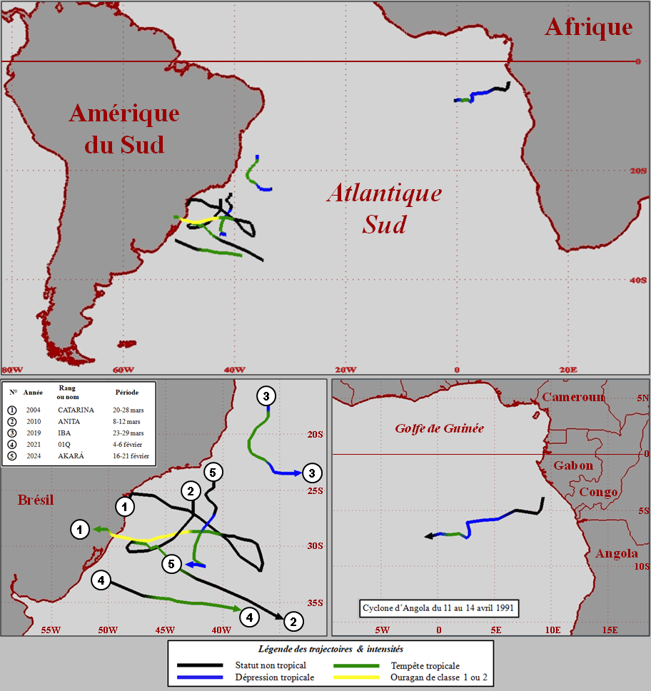régions de l'Atlantique Sud pour permettre le développement cyclonique entre les méridiens 5°S et 15°S du continent africain au continent sud-américain, ainsi que face aux côtes du Brésil jusque vers 30/35°S.